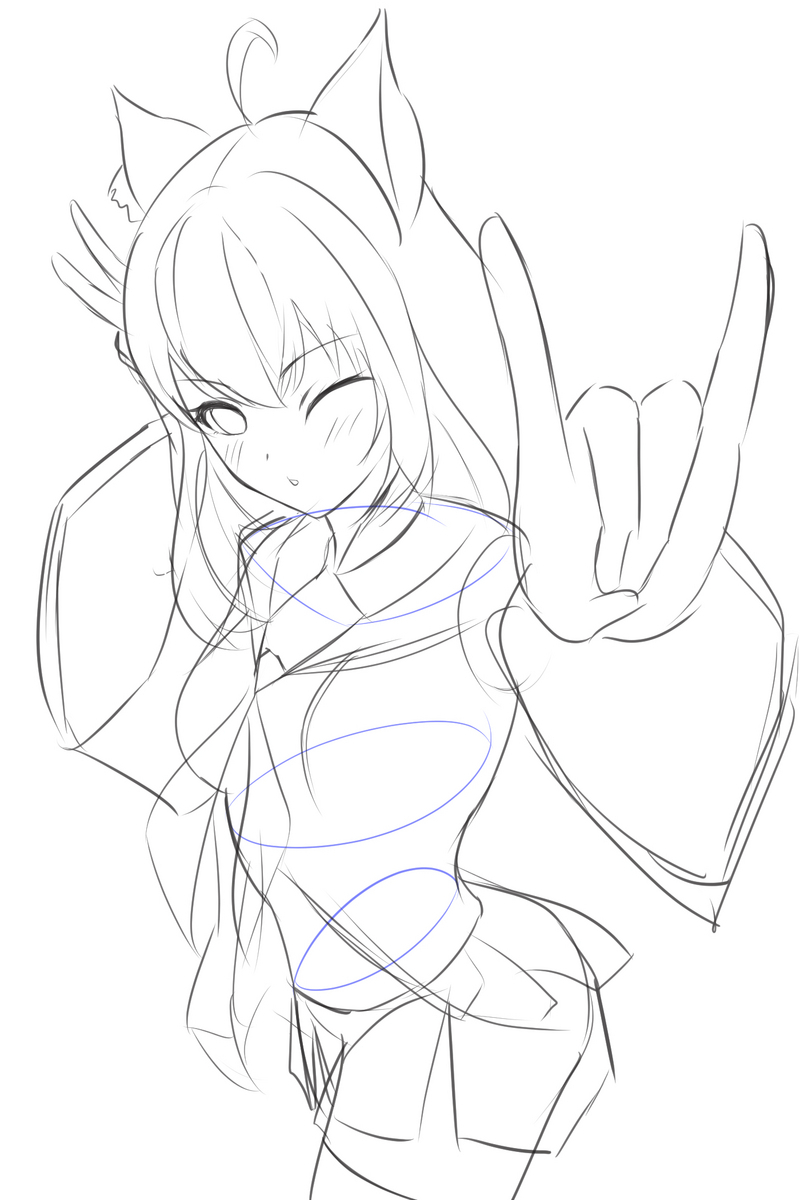 そろそろ線画にいきたい所でしたがこのままではつまらない絵になってしまう確率8割越えだったのでポーズや表情を再度検討することに。